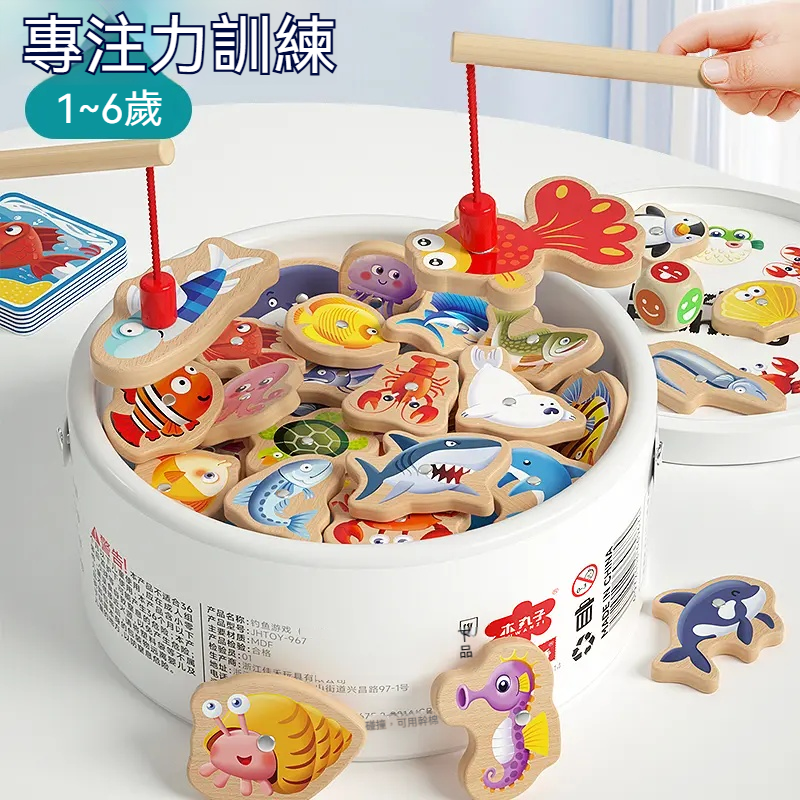 寶寶的第一場深海探險!開發智力,從釣魚開始!30條顏色豐富的磁性魚+30片場景拼圖+2魚竿 ✅安全無毒材質 ✅親子互動小遊戲 ✅鍛煉寶寶手眼協調與精細動作