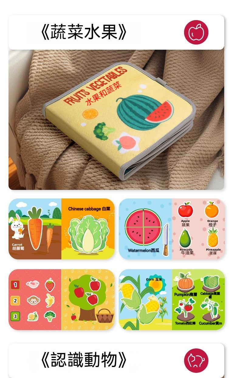 寶寶的第一本「撕不爛」魔法書!----益智布書,撕不爛+扯不壞+可撕可貼 ✅ 超解壓,牢固車線超耐玩 ✅ 食品級材質,啃咬也不怕 ✅ 顏色鮮豔+趣味圖案