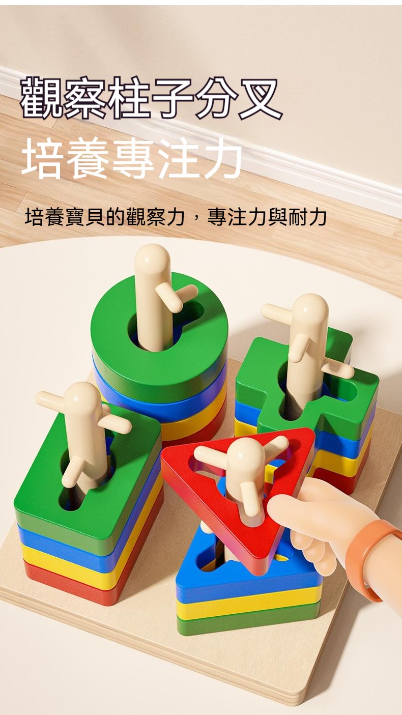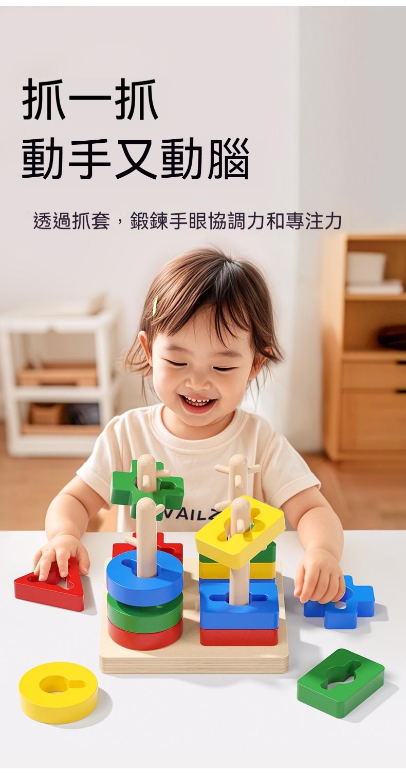 寶寶思維課,就在遊戲中開始!幾何配對套柱讓寶寶的思維打開 ✅安全無毒材質 ✅ 抓握與配對 → 訓練「手眼協調」能力 ✅ 認識形狀 ✅ 區分顏色 → 開啟「色彩感知」的大門