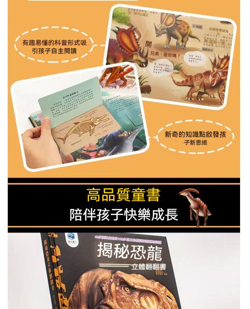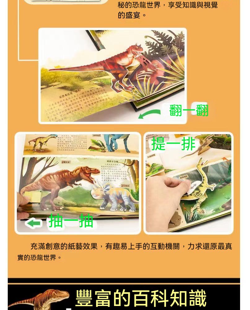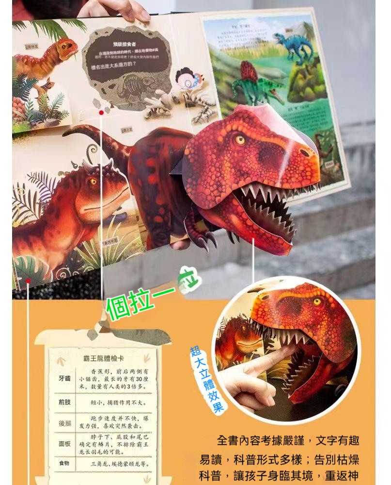 家裡有個「恐龍小專家」?是時候送他一份驚喜大禮了! 一翻一拉,恐龍「跳」出頁面! 霸王龍、三角龍、翼龍等,立體場景 + 趣味翻頁,知識瞬間變好玩 ✅ 激發探索欲 ✅ 培養觀察力 ✅ 動手又動腦