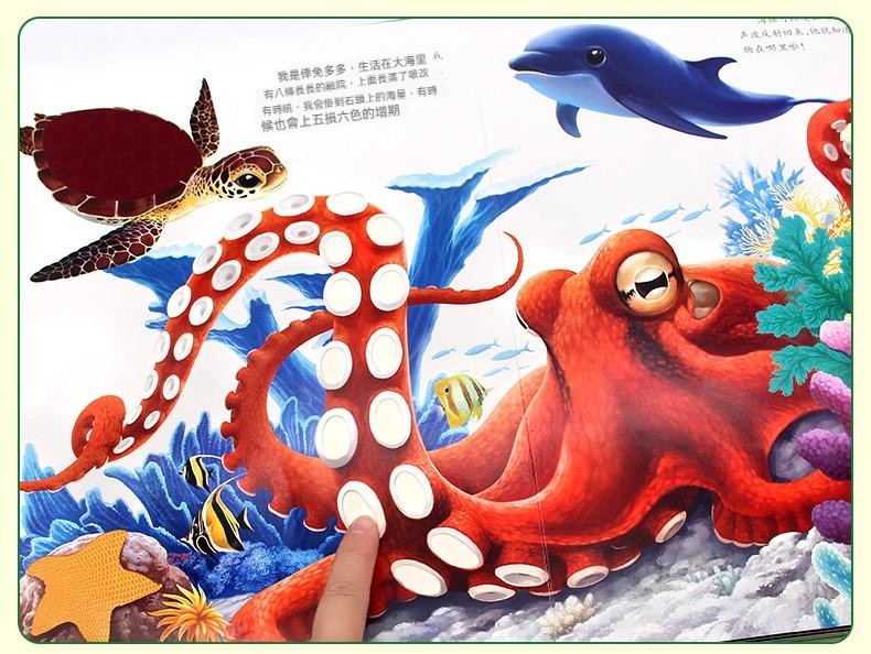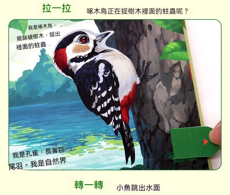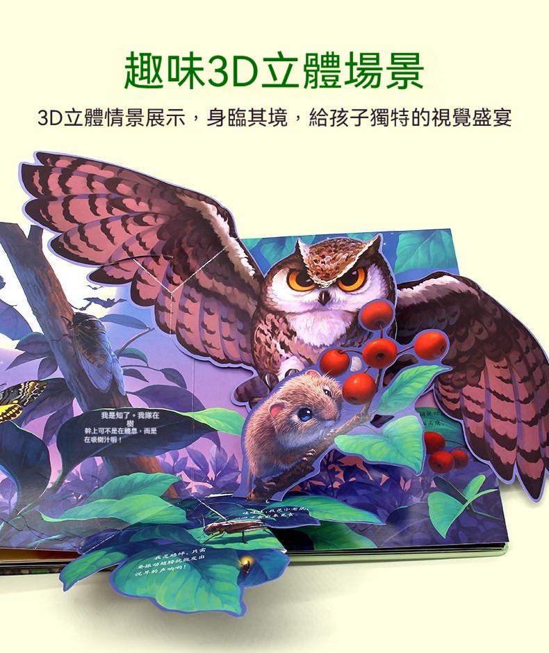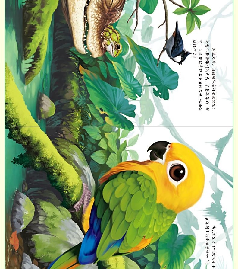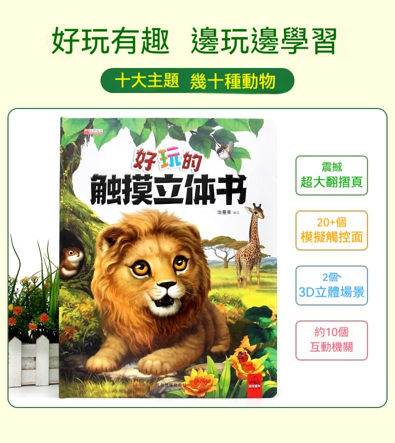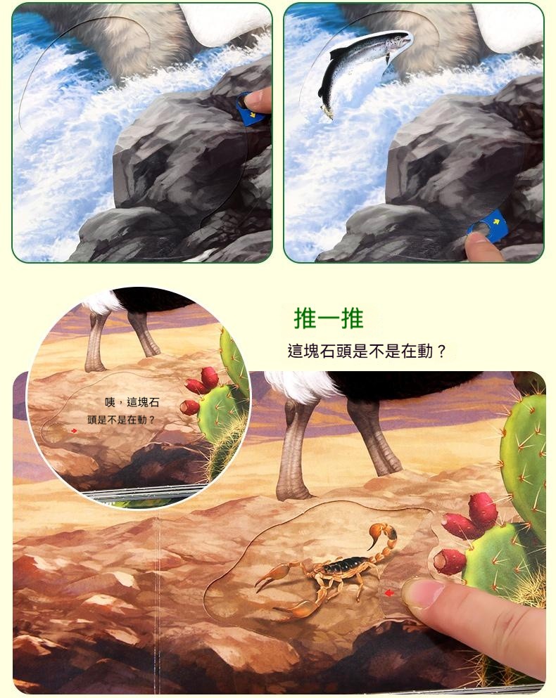 觸摸立體書讓寶寶通過真實觸摸認識到“柔軟”“滑溜溜”等形容詞 ✅20+個高仿真觸摸體驗 ✅巧妙機關設計,翻開書本樹葉下有蛇 ✅多種故事場景:啄木鳥吃害蟲、樹葉下藏蛇、牛尾巴趕蚊子知了吸樹汁等 ✅ 摸得到的叢林:獅子的鬃毛是毛茸茸的
